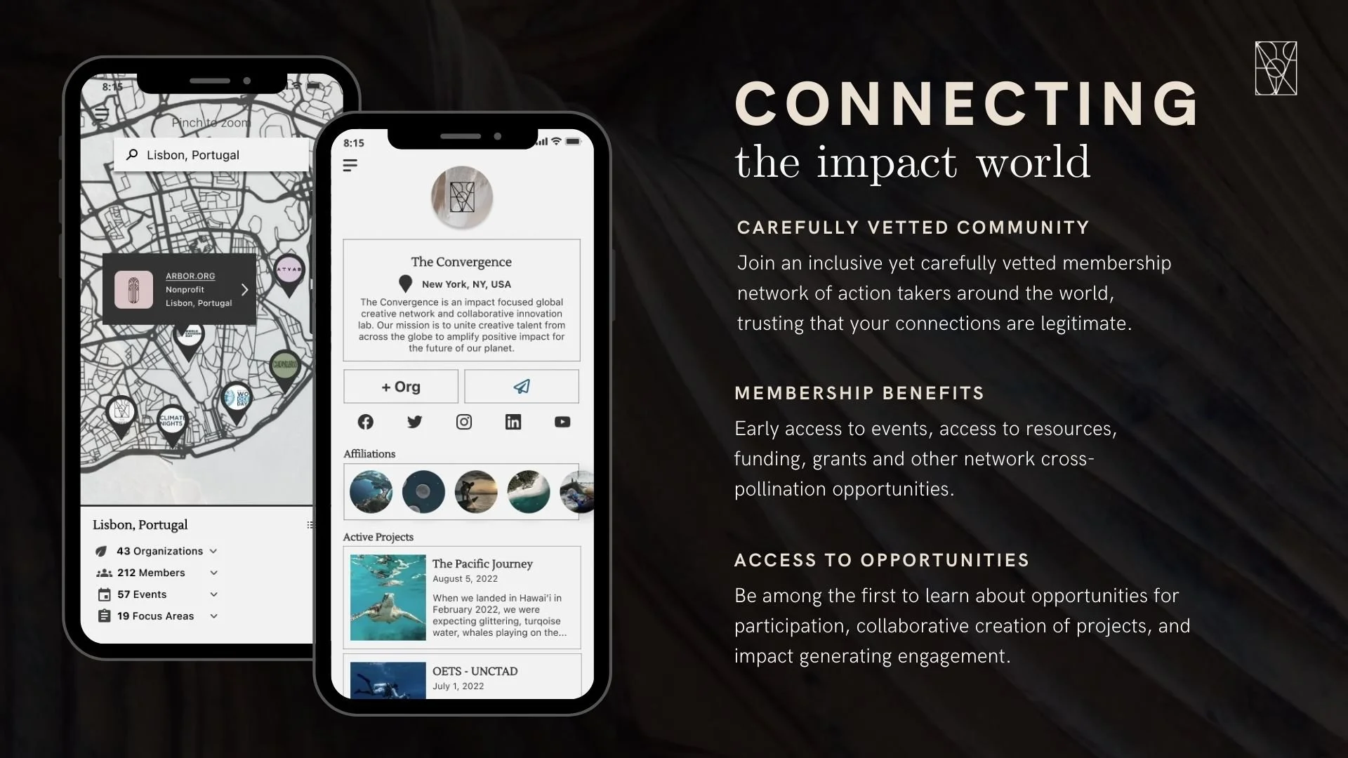 Our mission is to unite experts, organizations and creatives from around the world to amplify the positive impact on the future of our planet through collaboration, multi-disciplinary projects, and philanthropic initiatives.