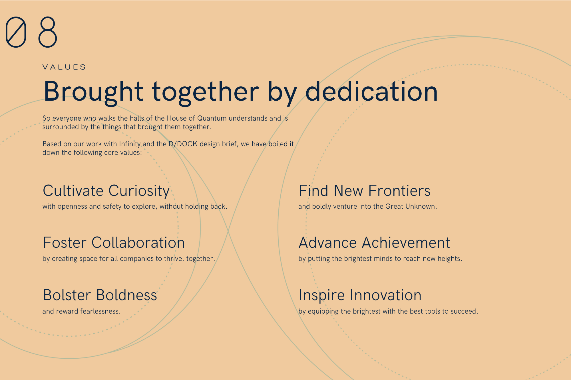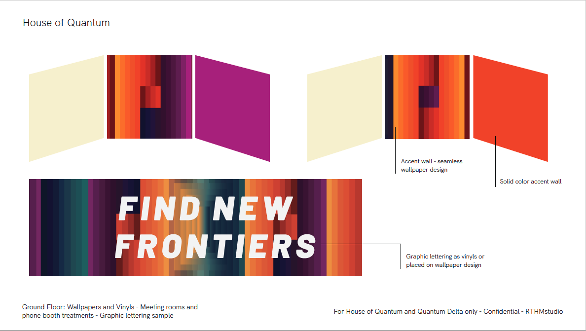 D/DOCK had already transformed the interior office space into an open concept dream co-working space, and all we had to do was apply the finishing touches, colors, and textures to really transport people. We visually translated some of the core concepts in quantum science to come up with the theme for each floor.
